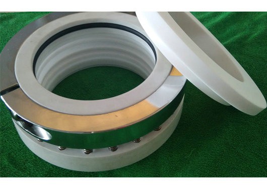 2、當(dāng)介質(zhì)有毒、易燃、易爆以及對(duì)泄漏量有嚴(yán)格要求時(shí),不易使用。適用于公稱壓力小于或等于0.4MPa,工作溫度為大于-20-200°C的搪玻璃攪拌容器用機(jī)械密封,攪拌軸外徑為40-140mm,轉(zhuǎn)軸線速度小于2m/S。采用單端面小彈簧聚四氟乙烯波紋管。 使用工況:無(wú)懸浮顆粒的腐蝕性氣體(HF除外) 單端面機(jī)械密封工作原理:靠垂直于旋轉(zhuǎn)軸線的端面在流體壓力和補(bǔ)償機(jī)構(gòu)彈力的作用以及輔助密封的配合下保持貼合并相對(duì)滑動(dòng)而構(gòu)成的防止流體泄漏的裝置。
